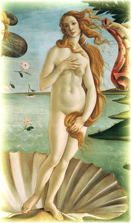 2. Раждането на Венера – детайл, худ. Сандро Ботичели, 1482 – 1486 г. Галерия Уфици, Флоренция.