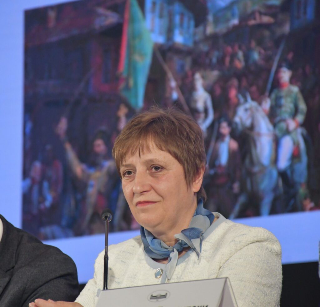 Чл.-кор. Славчева се обърна към присъстващите в залата с думите: „Априлското въстание е символ на стремежа към свобода. Примерът, който то носи е, че смелостта и саможертвата могат да променят хода на историята. То ни напомня, че истинските промени изискват решителност, солидарност и съвместни усилия. Днес тази ценност има особена актуалност. За да съхраним паметта, гордостта и достойнството си като народ, е нужно национално обединение, ясно виждане и обща воля. Създавайки този национален комитет ние ще покажем, че можем да действаме заедно там, където институционалната инициатива липсва. БАН предлага да обединим усилията си, за да почетем героите с достойнство и внимание, каквото заслужават. Задачата ни е заедно да създадем програма, която не само да отбележи годишнината, но и да припомни за ценностите на свободата, солидарността и националната отговорност, която имаме не само към предците си, но и към бъдещите поколения на България.“